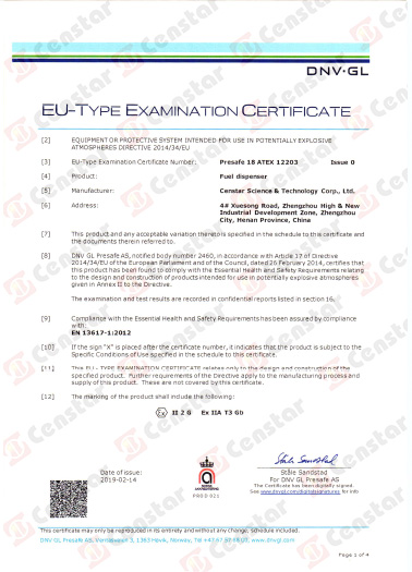 Censtar has obtained the ISO9001 Quality System Verification Certificate in 2000 year and 2000 version Certificate in 2003. In 2003, Censtar acquired the ISO14001 Environment Management System Verification Certificate, and in 2006 and 2009 passed the reexamination for ISO9001 (2000Version) and ISO14001 (new version)Censtar brand fueldispensing pump is awarded as China Top Brand product by China Quality Supervision Bureau in 2010, 2011 and 2012.Censtar has obtained the qualification of “NationalProduct Inspection-Free” in 2010, 2011 and 2012